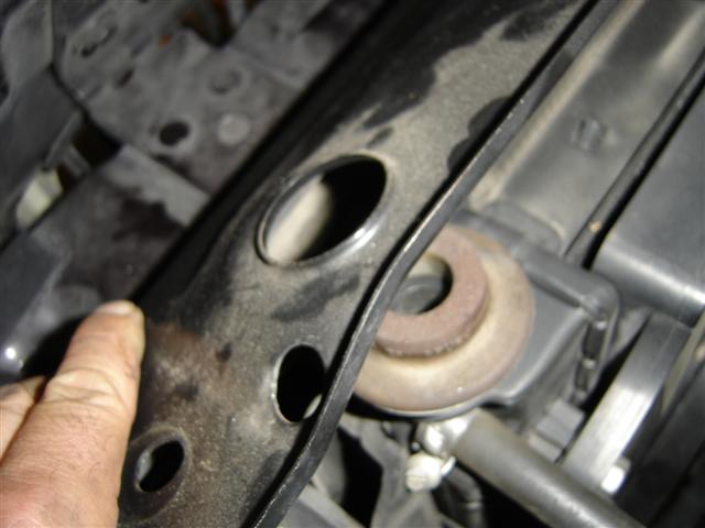 ![]() Une fois les vis ôtées, il suffit de relever doucement la flasque. On remarquera qu'elle maintien le radiateur de refroidissement mais aussi le radiateur de « clim » dont les silentblocs sont plus petits.