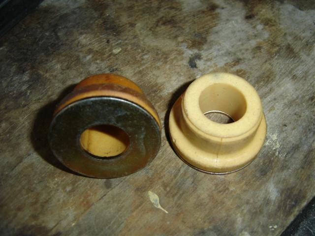 ![]() Remarque: Il se peut qu'il soit très difficile de remettre les silentblocs neufs sur le radiateur car la côte intérieure de la bague métallique du silentbloc est inférieure à celle de l'ergot du radiateur. A ce moment il est nécessaire de limer légèrement la rondelle.