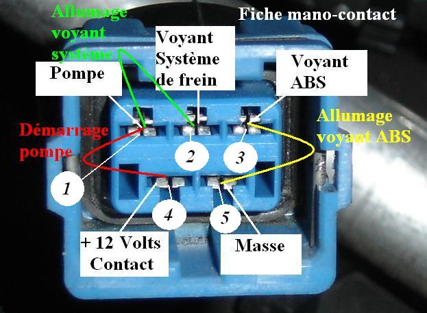 Le contrôle de la pression est fait directement sur la pompe par un mano-contact. La fiche bleu branchée dessus le mano-contact a 5 connections.